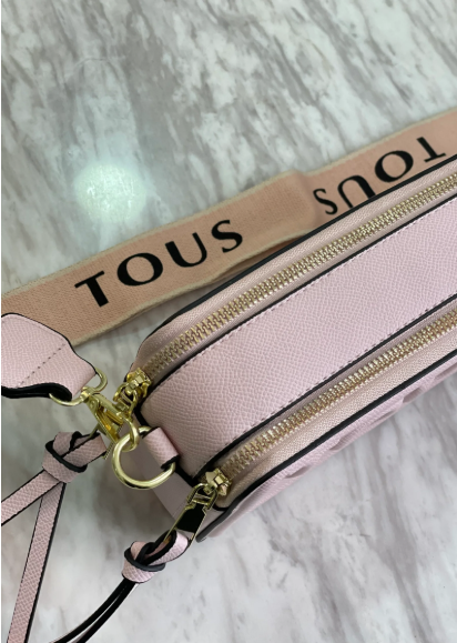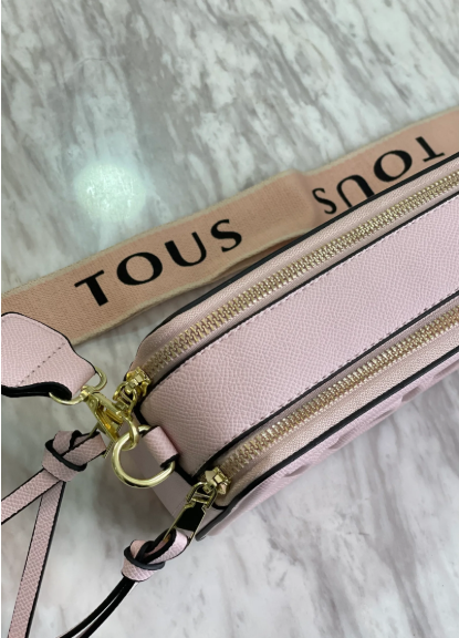Material en cuero sintético, posee dos 1 compartimento con doble corredera, incluye strap contramarcado, letras en relieve con TOUS, tiene forro interno.