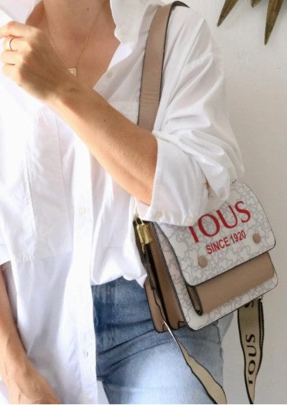 Manos libre TOUS de tamaño mediano, calidad 1.1, elaborado en cuero sintético, posee tres compartimentos internos, uno de ellos con sistema de cierre en corredera y 1 bolsillo externo, incluye strap para manos libres y cargadera corta en cuero sintético, sistema de broche magnético 🧲